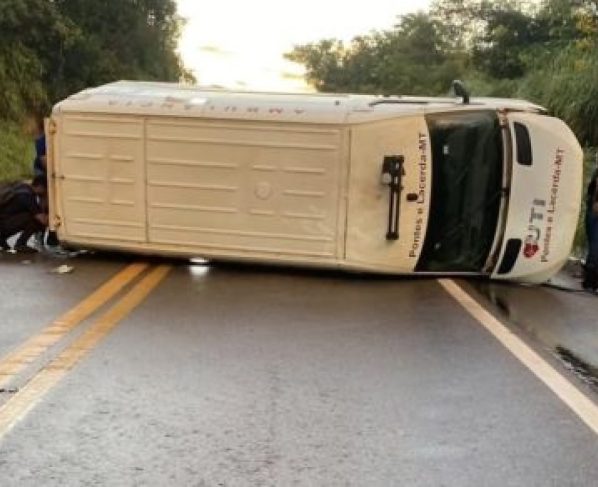 Um acidente envolvendo uma ambulância deixou cinco pessoas feridas na tarde de ontem, 14 de março, por volta das 17h, no km 209 da BR‑174, no município de Figueirópolis d’Oeste (387 km de Cuiabá). O veículo seguia no sentido Pontes e Lacerda – Cáceres quando perdeu o controle em meio à forte chuva.