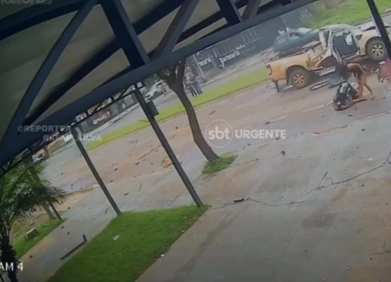 Vídeo mostra momento que caminhonete derruba postes e mulher fica ferida | HiperNotícias