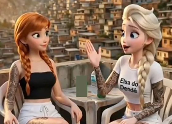 Reprodução Princesas da Disney pobres, dançando em bailes funk nas comunidades do Rio de Janeiro. Casais de frutas humanizadas lidando…